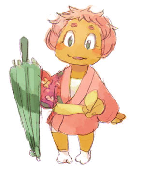 意思を持つ大きな傘といつも一緒です。やちよと傘の仲は良好!